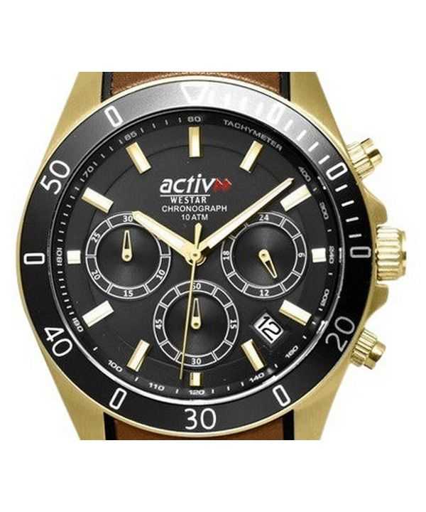 Westar Activ Chronograph Leather Strap Black Dial Quartz 90245GPN183 100M Men’s Watch