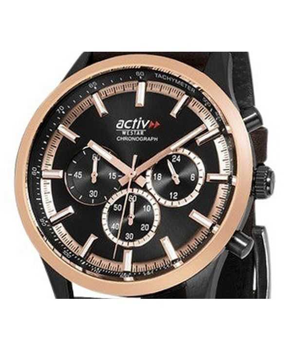 Westar Activ Chronograph Leather Strap Black Dial Quartz 90265BPN603 100M Men’s Watch