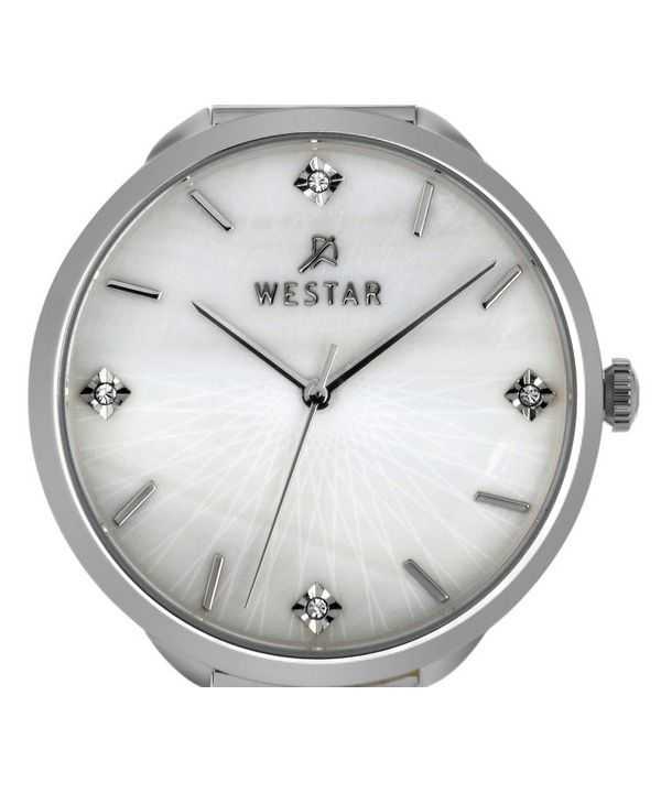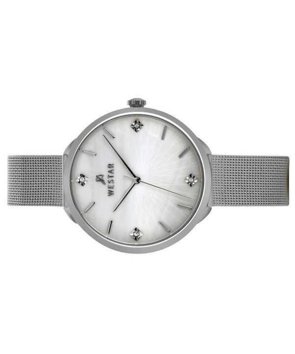 Westar Zing Crystal Accents Stainless Steel Mesh White Mother Of Pearl Dial Quartz 00128STN11 Women’s Watch