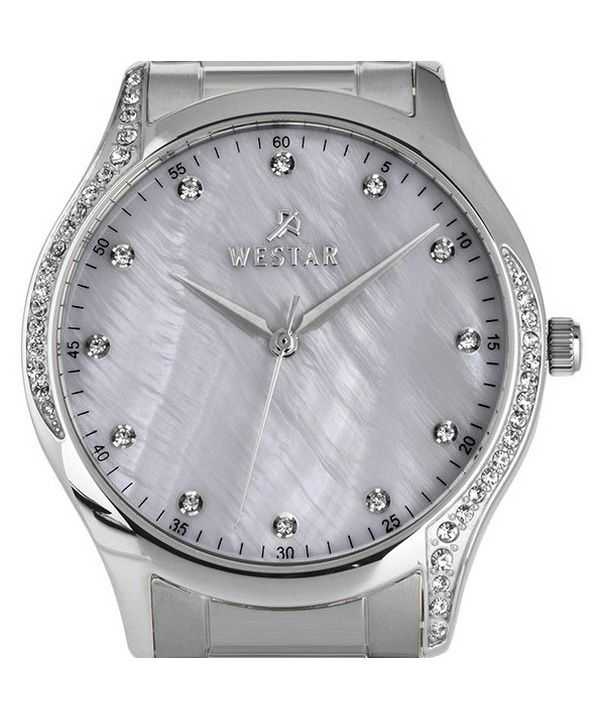 Westar Zing Crystal Accents Stainless Steel White Mother Of Pearl Dial Quartz 00127STN111 Women’s Watch
