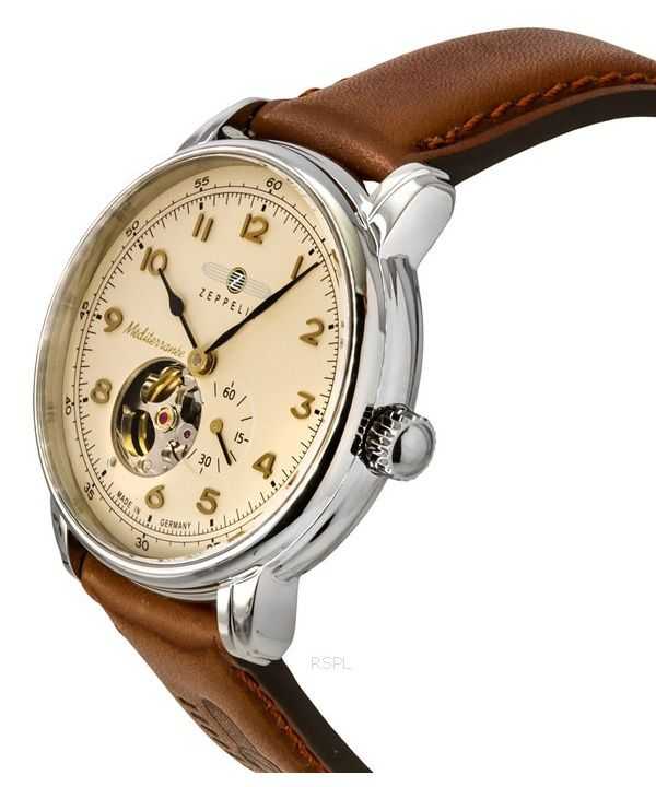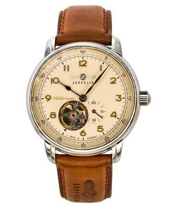 Zeppelin Mediterranee Leather Strap Open Heart Beige Dial Automatic 96665 Men’s Watch