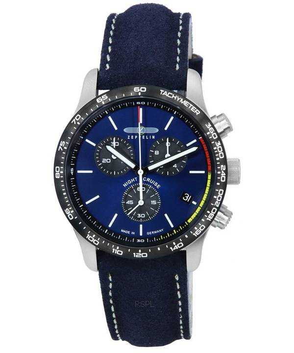 Zeppelin Night Cruise Chronograph Leather Strap Blue Dial Quartz 7288-3 100M Men’s Watch